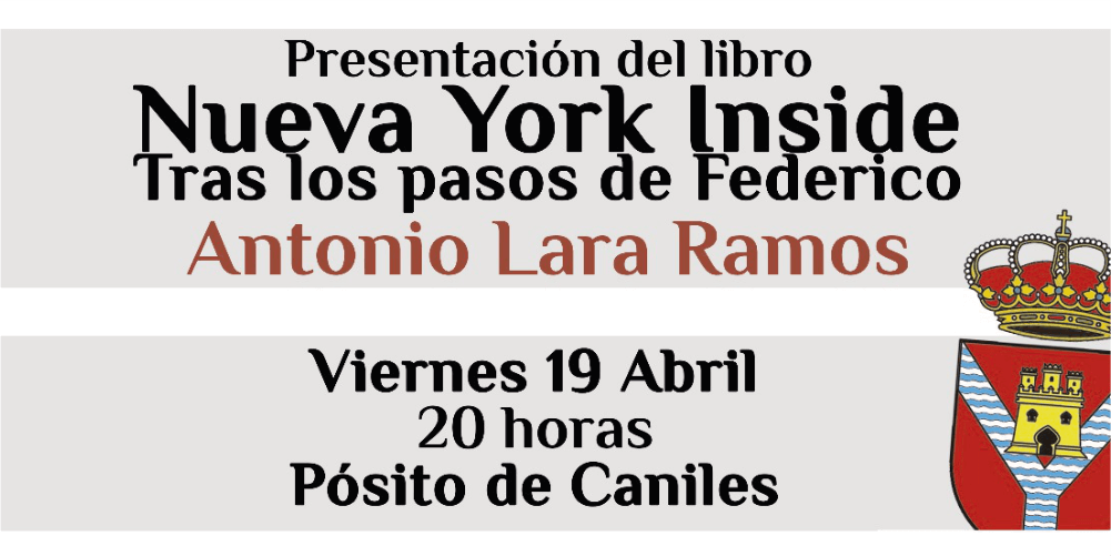 Presentación del Libro «Nueva York Inside: Tras los pasos de Federico» Escrito por Antonio Lara Ramos (Ilustraciones: Juan Vida), el día Viernes 19 de Abril a las 20:00 h en el Pósito de Caniles.