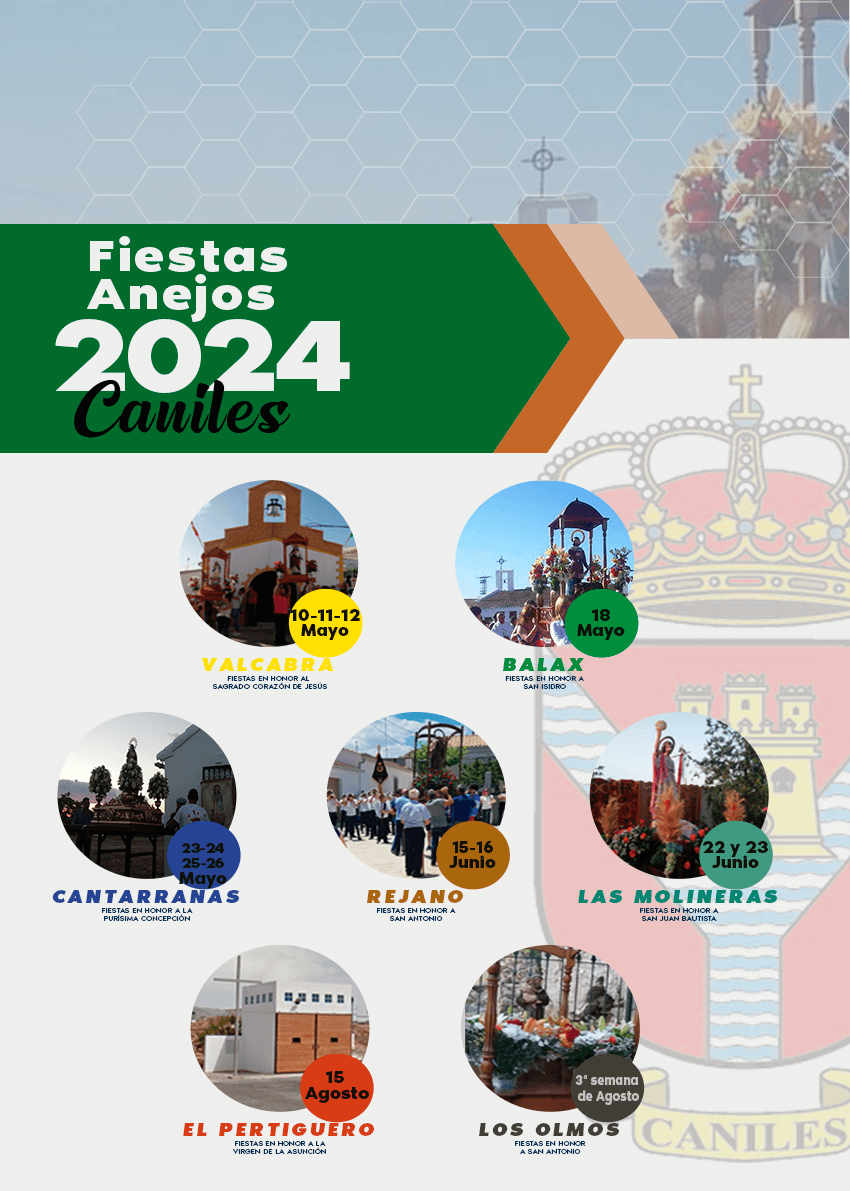 Consulta las fechas de las fiestas de los distintos Anejos de Caniles. En la página de facebook del Ayuntamiento de Caniles puedes consultar los programas de las fiesta (aquellos de los que disponemos).