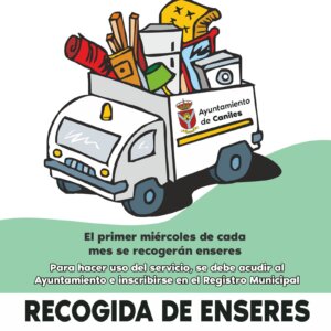 El primer miércoles de cada mes se recogerán enseres. Para hacer uso del servicio, se debe acudir al Ayuntamiento e inscribirse en el Registro Municipal