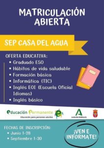 Desde el 1 al 28 de Junio puedes realizar tu matrícula para el curso 2023/24 en la enseñanza para Adultos. Nuestro municipio dispone de la